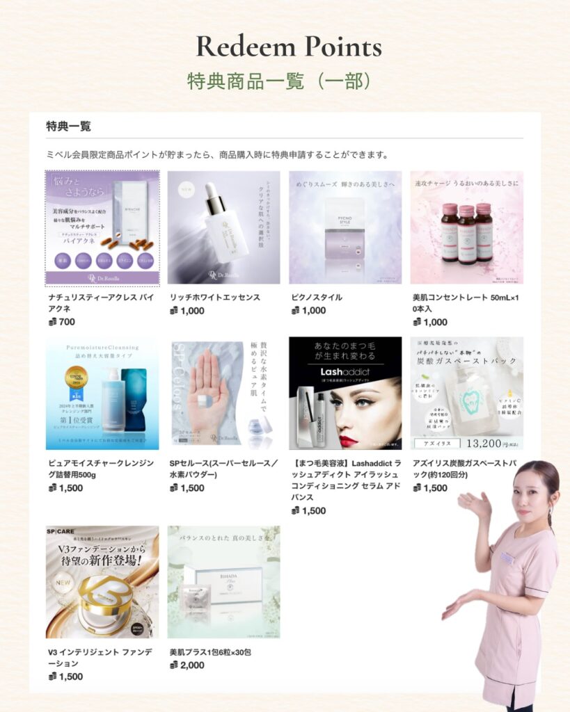 貯まったポイントは、スキンケア商品やインナーケア、人気の美容アイテムなどと交換可能🎁